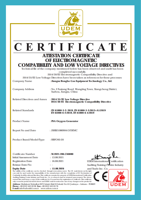 制氧機(jī)CE證書(shū)