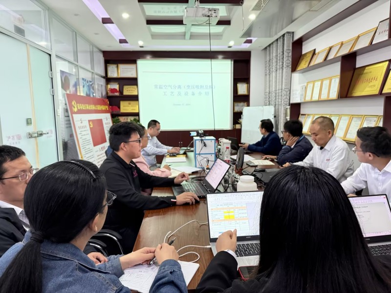 培訓(xùn)中,沈老師簡要介紹了本次培訓(xùn)的目的,并結(jié)合氣體設(shè)備市場,重點介紹了常溫空氣分離工藝基礎(chǔ)知識、常溫空氣分離(變壓吸附及膜)工藝及設(shè)備、碳分子篩及變壓吸附制氮技術(shù)、壓縮空氣膜干燥工藝及設(shè)備等知識,通過深入淺出的現(xiàn)場講解和提問方式,鼓勵學(xué)員們主動思考、積極發(fā)言。